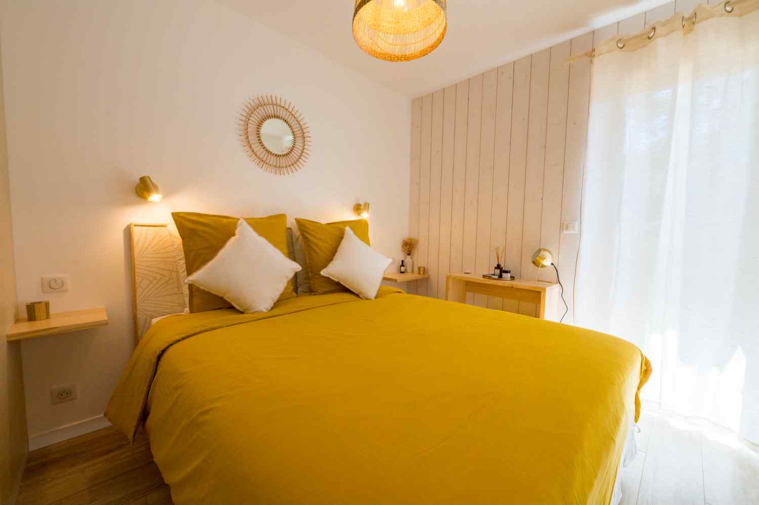Dans cette chambre, on retrouve l’âme des paysages mouvants qui sculptent le littoral. Les Dunes rendent hommage à ces merveilles naturelles façonnées par le vent, véritables gardiennes des plages et forêts de la presqu’île.